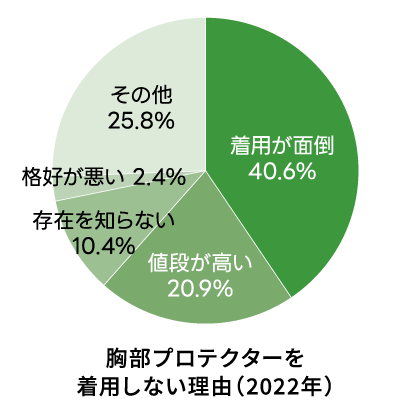また、同調査ではアンケート回答者の内胸部プロテクターを着用しているライダーはわずか「9.2%」にとどまっています。